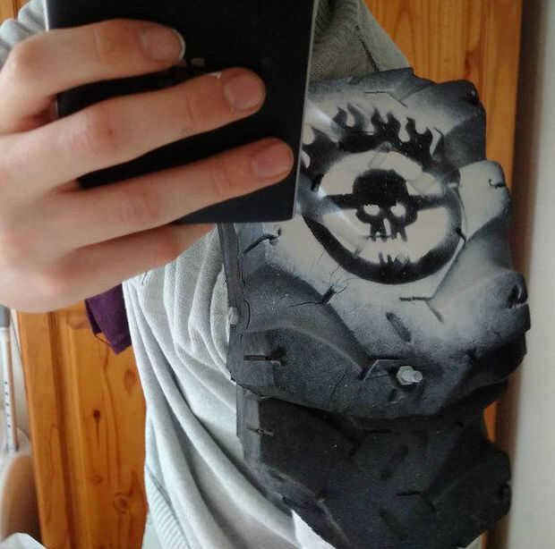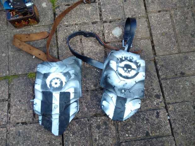 ¡ Listo! Después de (que) no es mucho trabajo duro a ti mismo tienes un par de almohadillas de armadura de neumático funcional post-apo. Tienen un juego alrededor con plantillas, colores, tipos de neumáticos, formas etc. y pasar un buen rato. Más tarde rellenado el interior hacia fuera con espuma para hacerlos un poco más cómodos de usar.