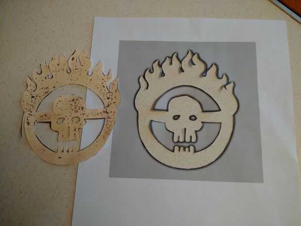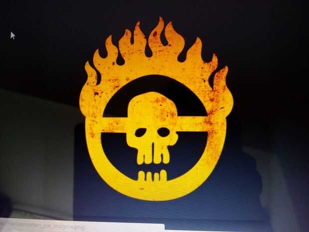 Encontré mi imagen en google. Sentí a pesar de esto es para un cosplay de Fallout que necesitaba un pequeño guiño a una de mis películas favoritas, Mad Max: Fury Road, usé insignia de Immortan Joe. Esto hizo aproximadamente el tamaño correcto en word de microsoft (usted puede mirar a escala exactamente pero áspero funciona bien para esto).