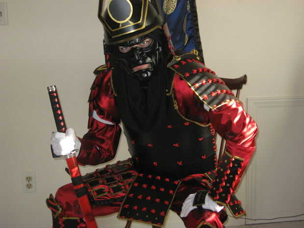 la armadura está hecha de polietileno de alta densidad 3/8" o tabla de cortar. Esta armadura de un diseño de un juego de video será utilizada en acrobacias con afilados cuchillos y espadas y en comparación con otros tipos de armadura de la época hechas del mismo material después bien la prueba haciendo un "Guerrero mortal" desafío estilo fueron tenemos un rostro en la armadura muchos y competir con las espadas reales!