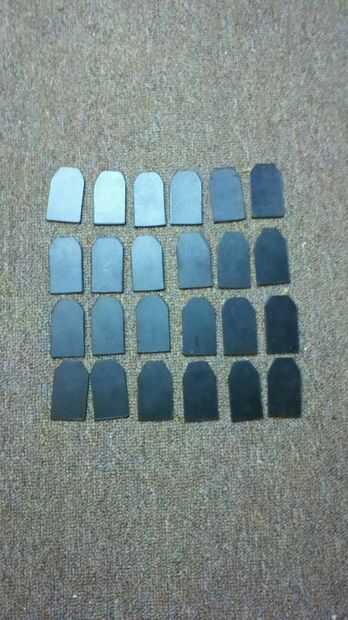 después de que todo está bien suave. tomar algo de su material de armadura y cortarlas en "tablillas" o "escalas" mis medidas eran 1,5 "x 2,5" pero debe medir su propia por lo que parece bueno para su tipo de cuerpo y divertirse con el diseño, mina son bastante simple pero triángulos u óvalos molaría demasiado!