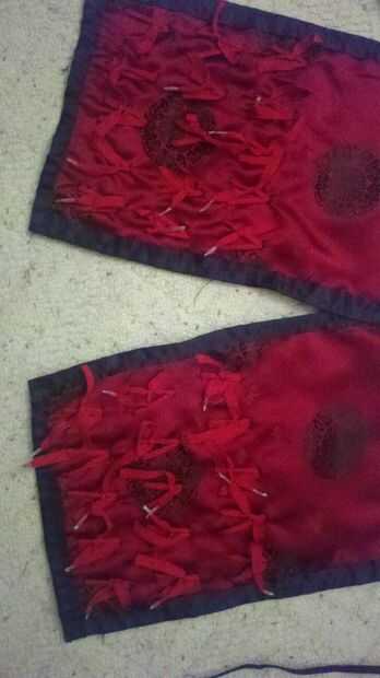 les ayuno es un truco que deja a criterio de usted. originalmente usé remaches pero terminó pesando mucho. Usé los wholes ¡ había perforado con los remaches y utilizar un cordón de zapatos a hilo a la tela y se trabajó y se ven muy bien al final!
