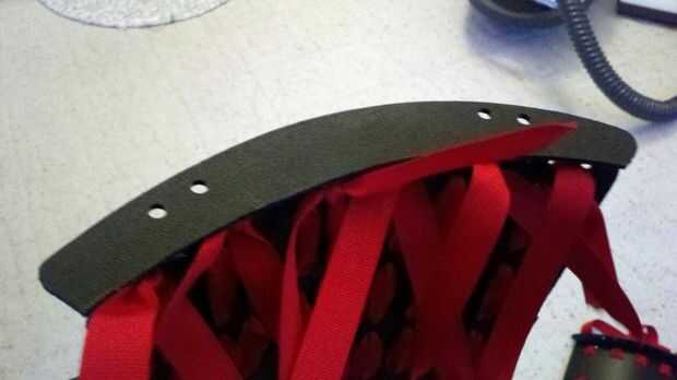 una vez que has completado les puso una curva agradable en los hombros y los muslos. (si usted utiliza Sinatra que vas a hacer esto antes de endurecer obviamente) para los agujeros del pecho hacia los lados debajo de donde los brazos será usted a pasarlo al igual que con las espinillas. en este momento desea elegir cómo desea ponérselo. el mio es un simple resbalón en el pecho. puede crear broches de presión o conectores de T como el dibujo en la introducción o cómo siempre elegir!