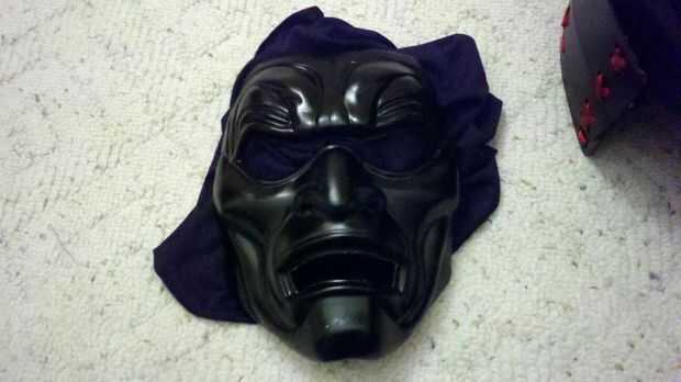 después de todo para ir agregar poco de pintura y detalles que coinciden con tu armadura divertirse con éste. algunos samurai usaba máscaras como protección añadida de la mandíbula de trauma embotado así que solo fue en amazon y consiguió una máscara inmortal 300 por $10 y había pintado negro. históricamente corte justo debajo de los ojos y la mitad superior de la cara estaba abierta. mantenía un rostro completo porque tengo otros planes para el traje ;)