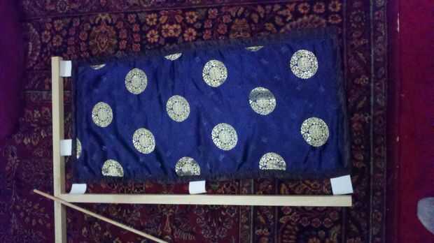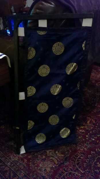 Haz un cuadrado pasador barra de corte al 25% de su longitud que un refuerzo de ángulo de la esquina y unirlo todo y añadir un tornillo que va en la espiga. uso un dremmel para cortar una arboleda en la espiga en el interior fueron a colocar la bandera. pintar el uso del color deseado la barra pasador montado para hacer la plantilla. encontrar a una tela de su elección y obtener 2" elástico y coser a tu banner. simplemente Sujete con grapa el elástico en las ranuras que hiciste anteriormente y pegamento en caliente para un look más suave.