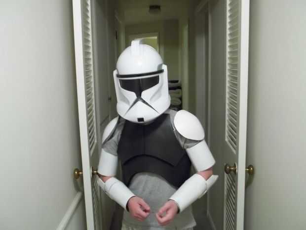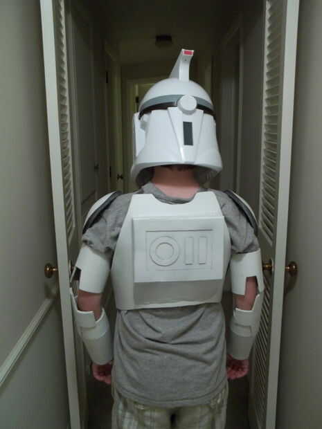 probablemente uno de los más desafiantes proyectos de arte me he comprometido con los niños, para fabricar un traje de soldado clon completo de childs (incluye casco) de hojas de cartón rígido. A continuación es el resultado final y un poco acerca de