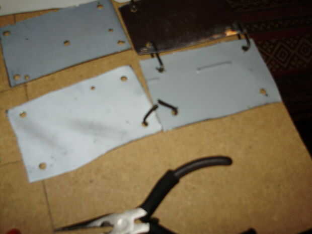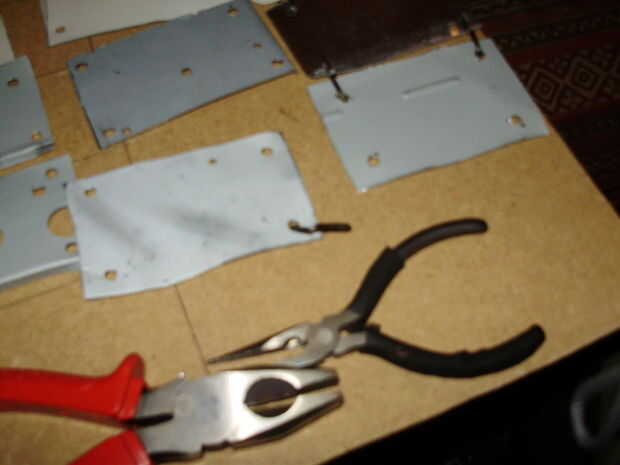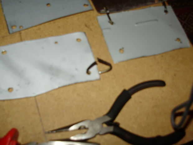 tomar el clip doblado y un extremo de lazo te orificio perforado en una esquina de una de las placas.