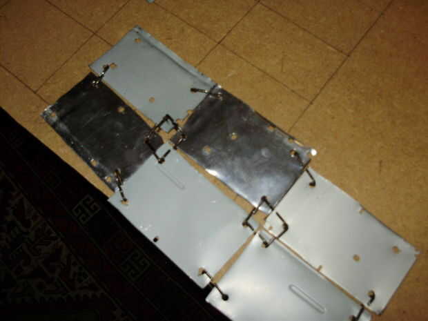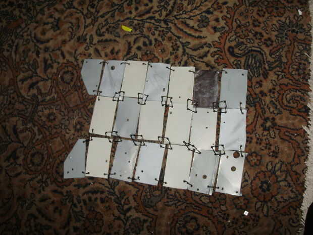 luego tomar una segunda placa y enrolle el otro extremo del clip en su orificio. no olvide asegurarse de que tienes correctamente alineados para que ese agujero izquierdo inferior en una placa está en línea con la parte inferior derecha en el otro etc. que me pareció más fácil de trabajar haciendo seis tiras de tres placas y entonces ligándolos juntos horizontalmente. Esto significa que existe mayor accesibilidad para los alicates entrar y los clips de la curva ajustada.