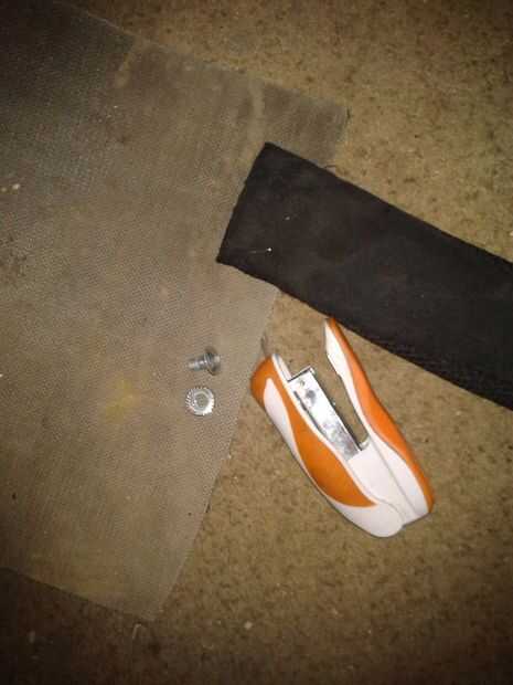 Si no tienes hebillas o una oferta limitada, Velcro es probablemente tu mejor opción siguiente. Es similar pero para cierre y apriete el Velcro, usted debe hacer una correa que envuelve la pierna y alcanza el lado no adhesivo de la cinta de Velcro. Para hacer esto, simplemente la capa del fieltro, Velcro y correa antes de taladrar los agujeros y apriete el tornillo. Asegúrese de que sólo añades una correa en el lado opuesto de la parte no adhesiva del Velcro, así que tienes una apertura y cierre de la secuencia. Usé Velcro en mi versión para darle una idea de lo que estoy hablando.