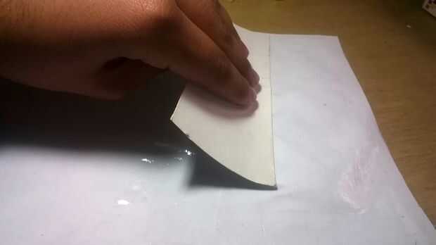 Toma una hoja A4 y extienda el adhesivo blanco en él con la ayuda de un palillo de madera o cartón.