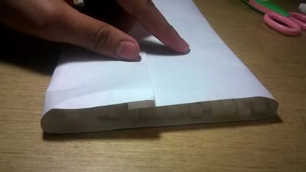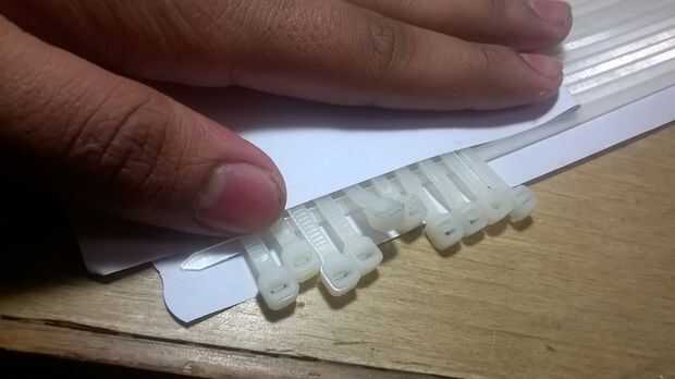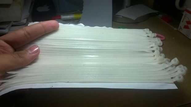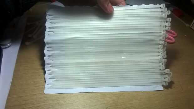 después de combinar todas las capas con la ayuda de pegamento es el momento de colocar el arreglo todo en un papel, que se encargará de todos ziptie de una manera educada.