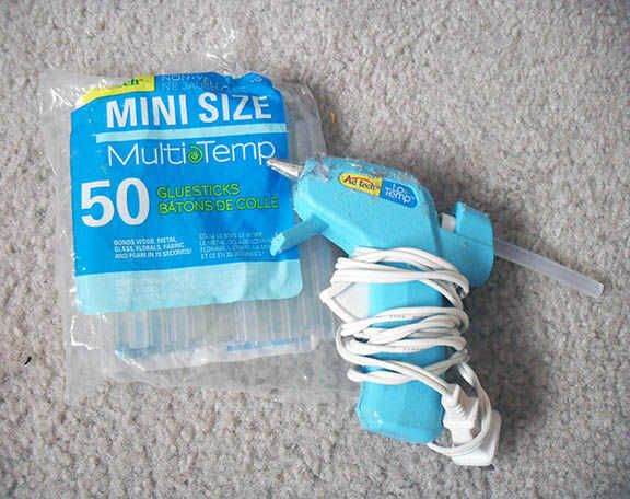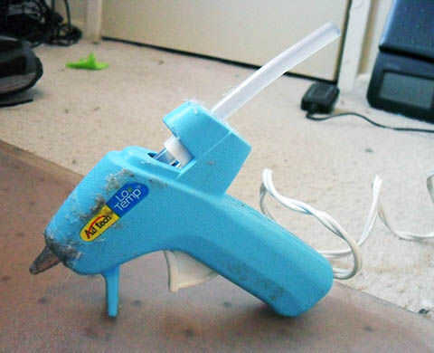 Conecte la pistola de pegamento caliente. Estoy usando una pistola temp baja super barata, básica.
