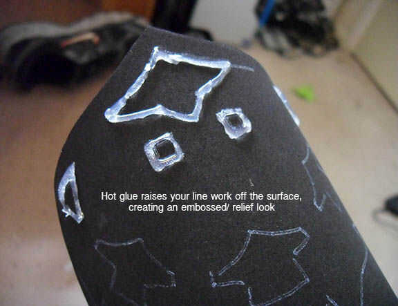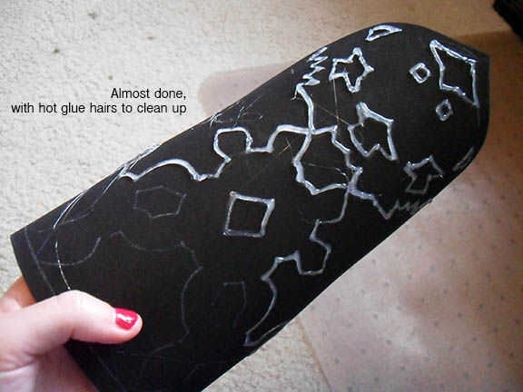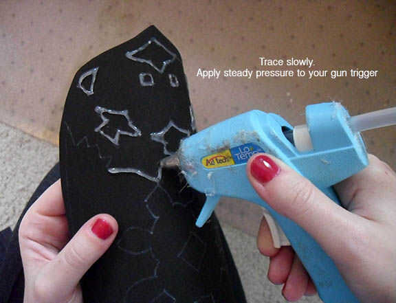 Para evitar perdida pegamento caliente "pelos" en su inicio y dejar puntos, presione la punta en la espuma un poco antes de levantar lejos. Puede utilizar la punta de la pistola de pegamento para guiar a su exceso de pegamento caliente sobre dónde sólo fueron dibujando y funden perfectamente con la línea existente. Mantener un palillo de dientes en mano para cortar y pase el pegamento no deseados lejos pelos y picos cuando esté listo.