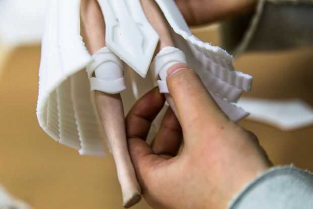 Paso 4: Doblar pies de barbie recto, poner en el protector de rodilla y calzados.