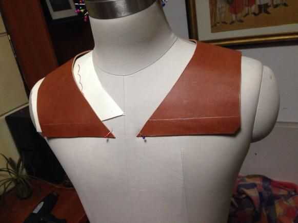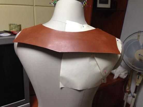 Diseñé una guarnición de cuero para la parte del shouder, que puede distribuir el peso de toda la armadura y hacerlo más estable y cómodo al usarlo