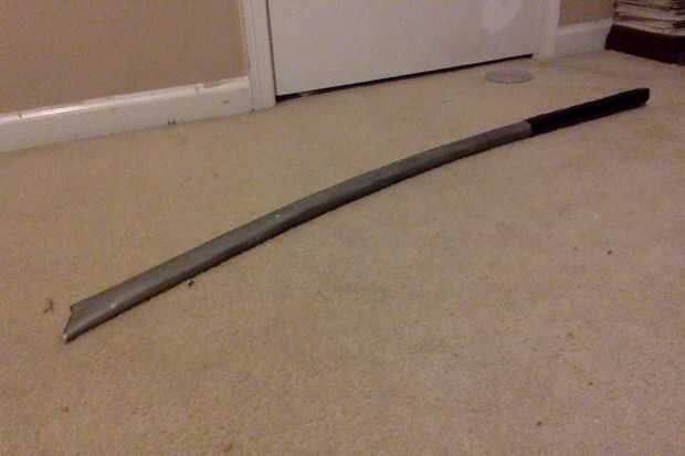 En primer lugar, debe asegurarse de que la longitud de la pvc es correcta para su altura. Mantenga sus manos hacia fuera y el alcance de pvc desde la parte inferior de la mano en el suelo. Si no lo hace, corte y vuelva a intentarlo. Una vez que tenga la longitud correcta, caliente la lámina hasta que pueda empujar hacia abajo y aplanarla. Asegúrese de que curva el tubo para que la hoja termina siendo curvada. Cuando el tubo es de refrigeración, tomar la sección que corte y corte a lo largo sabio que puede aplanar el tubo en una hoja. Corte un agujero lo suficientemente grande como para que la hoja en. Se trata de la guardia. Tanto el protector de la pintura y y el tubo de plata y colocar el protector en la hoja. Para terminar, envuelve la cinta alrededor de la empuñadura de la katana.