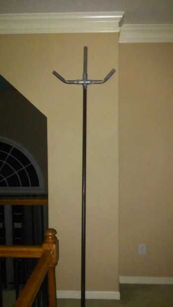 Coloque papel de aluminio de forma que tres pies de pvc puede ser sostenidos dentro de. Gire los ajustes de pistola de calor a la más alta posible y tres pies de la pipa de calor hasta que sea suficientemente flexible como para ser empujado hacia abajo por un dedo. Una vez que haya calentamiento, presione hacia abajo en general tres pies. Tratar de hacer la curva del mango en la llanura uniformemente en ambos lados. Pintura de aerosol la plata tubo todo y deje que se seque durante un día. Luego, envuelva cinta adhesiva alrededor de la sección inalterada de la tubería.