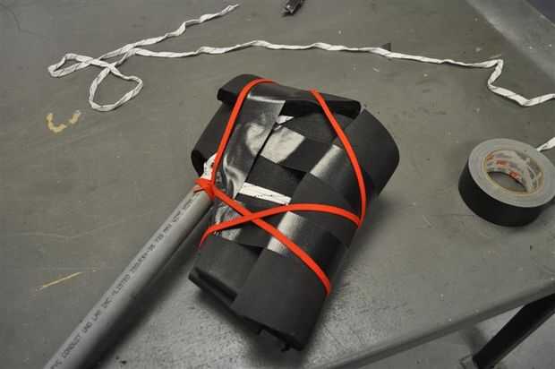 Después de eso, arpón más cinta. Su mejor apuesta es reforzar todos los cordones ya Unidos asegurándose de que no mueven con cinta de garfio. Es fuerte, es durable, y, si los cordones se atan firmemente, sólo hará todos los más fuertes y menos propensos a desmoronarse.