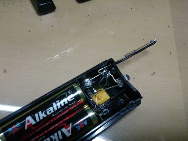 Ahora poner las piernas de cátodo de LED togeter con un extremo del interruptor de láminas magnético. Normalmente la pierna más corta del LED o más grande pieza de metal dentro del LED, o de la plana en el LED.