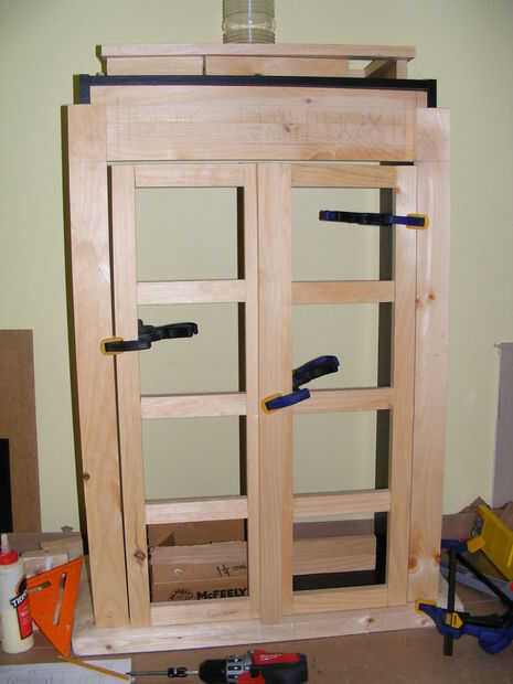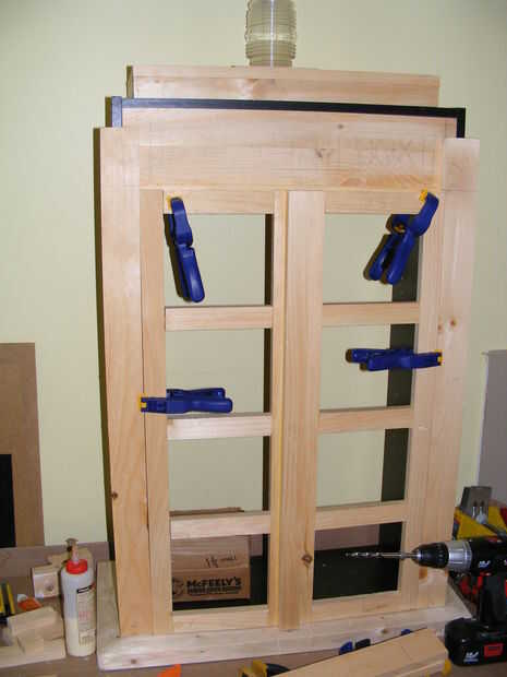 Cortar los soportes de madera. Pegamento y abrazadera hasta seco.