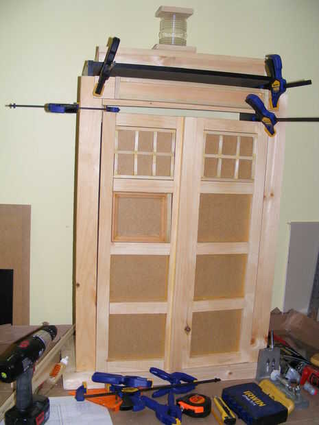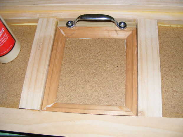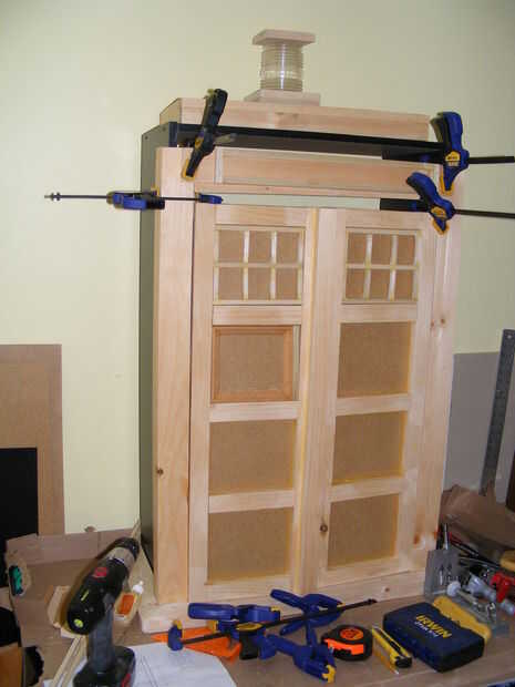 Mientras que las puertas se burlaban hasta, crear una pieza para el signo de la caja de policía. Inglete corte moldura al marco en el gráfico de la caja de policía.