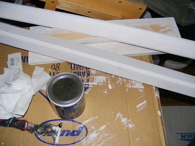 El revestimiento de madera del faux en la librería necesita un buen lijado áspero hasta la superficie resbaladiza. Preparación de arena, limpiar, prime y pintar la parte superior y los lados de la librería.