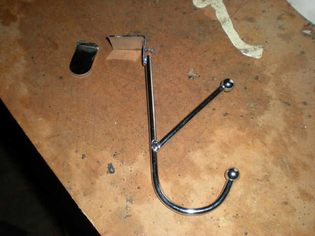 Corte la parte de atrás de la ficha el gancho de la puerta apagado. Sólo la parte posterior como se muestra en la foto. He utilizado una sierra de corte de metal para este paso pero va a funcionar una sierra para metales, puede que tenga que poner en un vicio para mantenerlo si lo haces de esta manera. Como una seguridad Nota Asegúrese siempre y ropa seguridad vidriado al utilizar herramientas eléctricas.