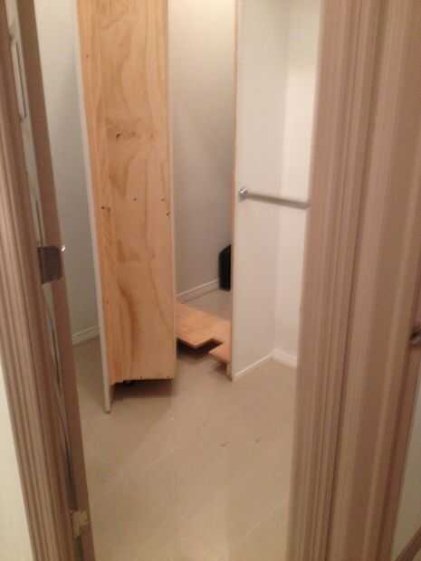 Hernia! Llevó la cosa fuerte a través de la casa de la bobina más allá el dormitorio y la zona de baño y coloque en su lugar. Hemos perforado a través de la carcasa exterior del lado izquierdo para marcar puntos de anclaje. He utilizado anclajes fácil si me did'nt golpeó un poste de madera. En el lado derecho utilizar escuadras y lo anclajes en el interior de la caja fuerte por ese lado. Luego, probamos la puerta y arrastrar ligeramente. Su piso no era nivel. Destornillar las bisagras se llevó a cabo el interior sólo la sección y arena el ligeramente inferior para asegurarse de que swing claro. Luego apilados la pequeña estantería que empareja encima de la unidad de Zapata y les atornilladas. Esto fue seguido por estantes superiores y barras de armario finalmente. Ahora si te fijas bien puede que la brecha en la parte inferior es sospechosa. Pero si usted no está buscando una puerta secreta no se presentan a usted. Ahora, en definitiva, el diseño debe ser cargada con la ropa para ayudar a que todo lo mezclan. También iba a colgar algún abrigo ganchos en la pared izquierda y que también ayudaría. El armario es bastante alto y su primera tendencia es a ver. Todos estos elementos juegan juntos.