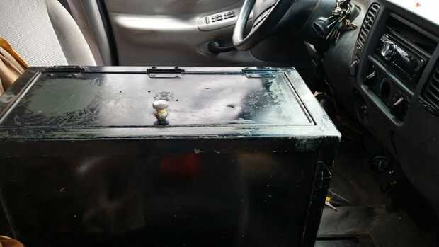Como tú, tengo una consola de policía base atornillada al piso de mi carro. Yo había soldado la caja acero directamente a él. Hay cualquier número de maneras de ir sobre esto. Sólo asegúrese de que la caja no va a ninguna parte. El tamaño y el peso ayudan con eso.
