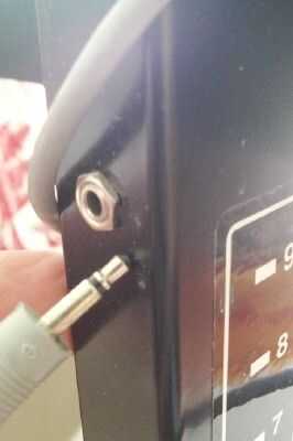 Nuestro equipo de eBay vino sin cualquier cables de conexión. Ver la segunda foto. La línea eléctrica que recoge impulsos de un interruptor operado por un imán en la rueda volante es un cable de audio mono simple de 1/8 de pulgada.