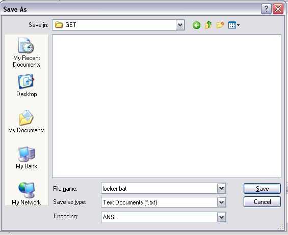 y guárdelo como locker.bat