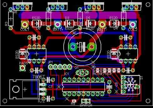 Estos son los rastros de grasa a lo largo de la parte superior de la Junta y también conecta al condensador. Incluso un rastro del grueso del alambre no será capaz de llevar suficiente corriente para encender el carro-armario. Hemos destruido nuestros primer tableros pocos debido a este problema. Nos parece mejor reforzar los rastros por el alambre de soldadura a lo largo de la traza.