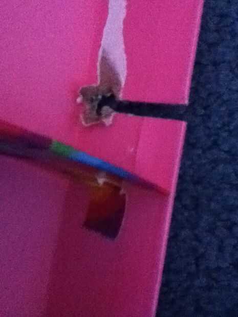 Se instalaron armarios de pared en nuestro armario un tiempo atrás. Los cajones no moveríamos y no cierran. Tomé los cajones/estantes aparte y hacer algunas reparaciones. He aflojado algunos tornillos y reemplazar algunos mangos. Entonces usé partes