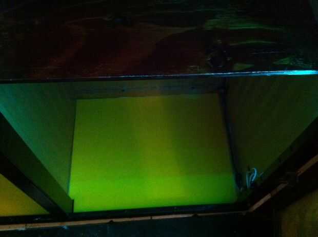 Finalmente el 'nuevas' puertas fueron colgadas y luces fueron grabadas en el interior frontal borde alrededor del perímetro.  El metacrilato amarillo fue cortado a la medida y poner en el suelo del armario de lino.  Los tiradores de las puertas look fantástico!