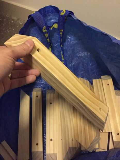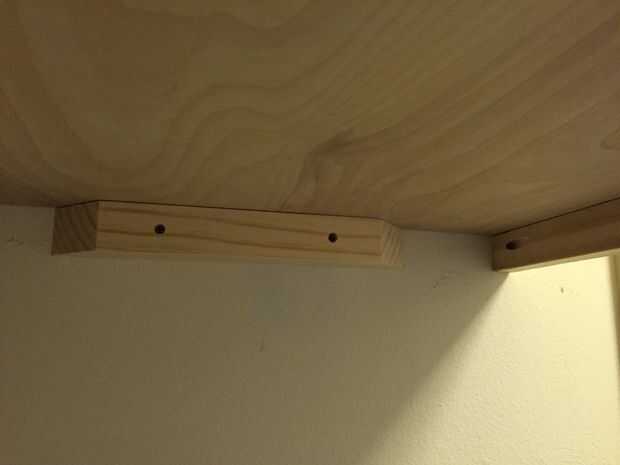 Todos los estantes se fijan a una pared o aparador con 2 x 2 tacos de agujeros avellanados y atado con anclajes de paneles de yeso (evitando los pernos prisioneros - marcados en la cinta de pintor - que, en nuestro edificio, son de acero). Aunque no sé que utilizaría el mismo sistema para literas, son lo suficientemente fuertes para la ropa.