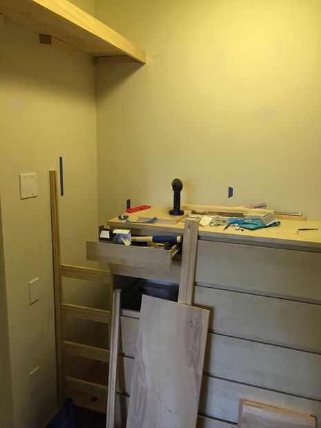 Dicho esto, desde "Qué es", en lugar de una idea más general de las dimensiones de las paredes del armario, me permitidas conseguir un casi exacto ajuste para casi cada estante. Los vacíos son debido a mis habilidades de carpintería naciente. Y permitir la expansión, debido a los cambios de humedad.