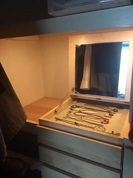 Por último, he añadido un sistema de 4 lámparas LED en la parte inferior de los estantes más bajos, puesto que éstos no coger como mucha luz de la luz en el techo - también hace que la zona de vanidad más funcional.