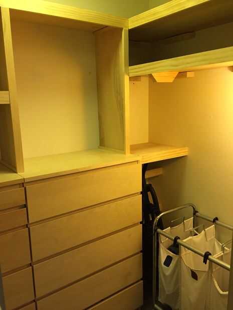 Por supuesto, también necesitamos espacio para nuestros zapatos. Una vez más, nos fuimos a nuestro almacén de suministro local de sueca. Los zapateros no son caros, pero que barato, decidí cambiar la barra de 5 diseño a una barra de 4 diseño. Tras la compra de cuatro estantes, eso significaba que podría construir cinco zapateros.