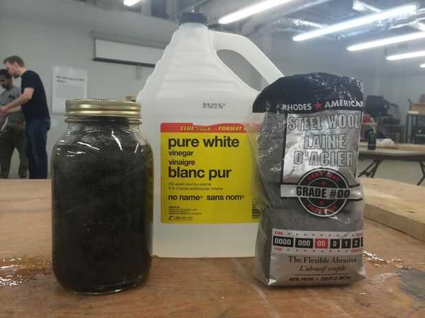 Después de lijar las puertas selló con un spray transparente mate para acabar con. Una vez que las paletas estaban desmontadas debían limpiar y lijar. Lijarles cambiaron el color y ya no parecían desgastada madera vieja así que decidí utilizar un acero madera lavado para devolverles ese aspecto antiguo. Para hacer el lavado lleno un frasco con vinagre blanco puro y lana de acero. Salí de la mezcla durante 3 días oxidar. Usé la lana de acero empapada como el cepillo para el lavado se aplica a la madera.