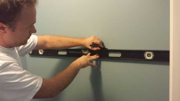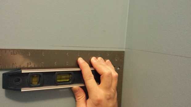Lo mejor es marca su distancia y utilizar un nivel como un borde recto. Llevar las líneas a las esquinas y la plaza para transferir la línea a la siguiente pared.