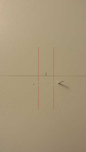2. una vez que haya encontrado la parte superior y parte inferior de la viga utiliza un clavo de acabado para aprovechar los agujeros debajo de la línea horizontal. Estos agujeros serán cubiertos por la moldura para que no se preocupe por ellos. Pero de esta manera sabes seguro exactamente donde está la viga.