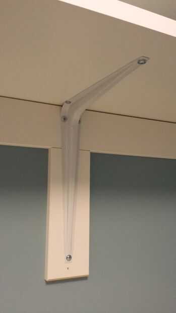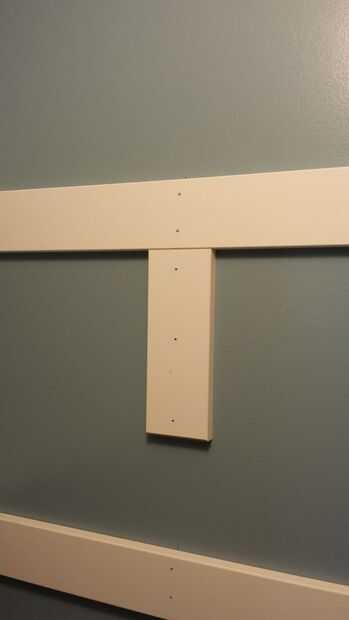 Como se puede ver en la imagen, el soporte no se sentará al ras con la pared. Por lo tanto usted tendrá que montar un soporte para fijar a la pared. Sólo mantenga un soporte y medir cuánto tiempo es necesario. No necesita ser exacta. Agregar una pulgada extra o 2 añade un toque decorativo. No olvide afeitarse fuera otro borde deg 45 en la parte inferior de esta, así. Esto ablanda el borde y hacer que se vea mucho más bonito.