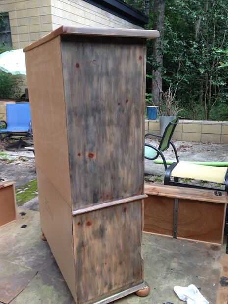Quitar la moldura que era un poco demasiado recargada para la mirada iba y luego lijar toda la pieza hasta la madera pelada con una lijadora orbital y lija de 60. Solicité un número adhesivo en la parte superior derecha de cada una de las puertas y cajones. Luego limpiar la mancha de madera y limpiar inmediatamente las rayas de la mancha de ébano. El grano 60 había dejado la madera un poco áspero que hace el tinte absorbe irregularmente. Esta realidad terminó agregando a la mirada industrial, pero después de la primera capa pensé que realmente había desordenado y que iba a ver como un desastre entreverado, pero dirigido! Yo deje que se seque la primera capa y luego añade más capas de cada una de las manchas hasta que estaba satisfecho con la mirada. Espera de la mancha se seque entre capa y capa, yo irregularmente aplicó, con reflejos y limpiar algunos pintura metalizada gris oscurezca en las piezas de conector metálico para que parezcan mayores. Yo Martha Stewart Gunmetal pero otras marcas probablemente trabajaría. También pinté la parte interior de las puertas un plano negro para hacerlos retroceder. Sólo pinté sobre las pegatinas número había aplicado y luego peladas a la etiqueta cuando la pintura estaba seca.