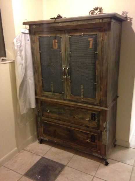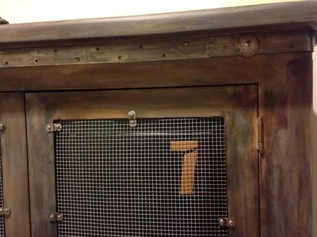 Después de aplicar el poliuretano (en un acabado mate), atornillan las piezas conector de metal en el armario. Solía finas piezas largas en la parte inferior muy superior y muy como fleje y asegurados en lugares con tornillos para madera y arandelas grandes. Usé los conectores de esquina a los arañazos de gato en mi pieza pero puede utilizar diferentes partes para encubrir lo que defectos tiene la pieza. Utilicé la manijas del puerta/cercado Departamento porque parecían más industriales que nada en el Departamento de hardware de cajón. Os adjunto calas (normalmente se usan para fijar una cuerda) como los tiradores. Corte y colocar la malla de vallado en la puerta de la inserción y asegurado usando las pestañas desde el Departamento de marcos de imagen. He quitado los pies del bollo y había reemplazado con ruedas. Entonces ruedas mi armario rústico industrial, Hardware de la restauración, en su lugar. Enviar que una foto de tu creación siguiente si este instructable le inspira.