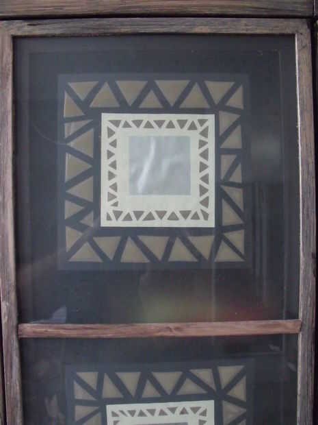 Agregar perlas de vidrio para crear ventanas cuadradas. Las tiras de madera se pegan en el cristal con cinta adhesiva de doble cara.