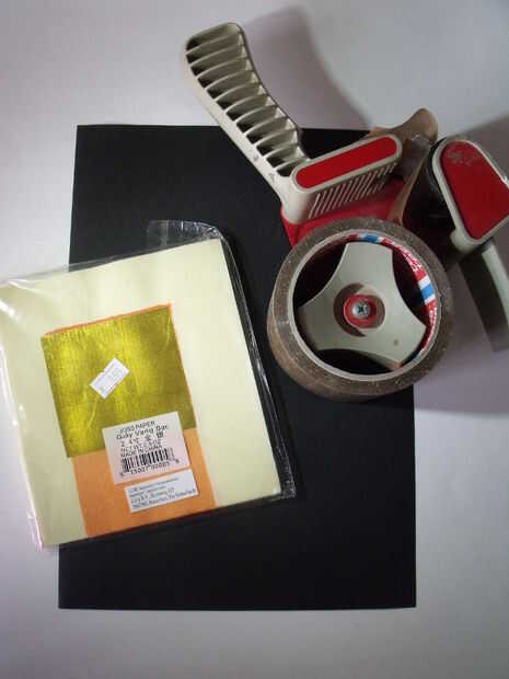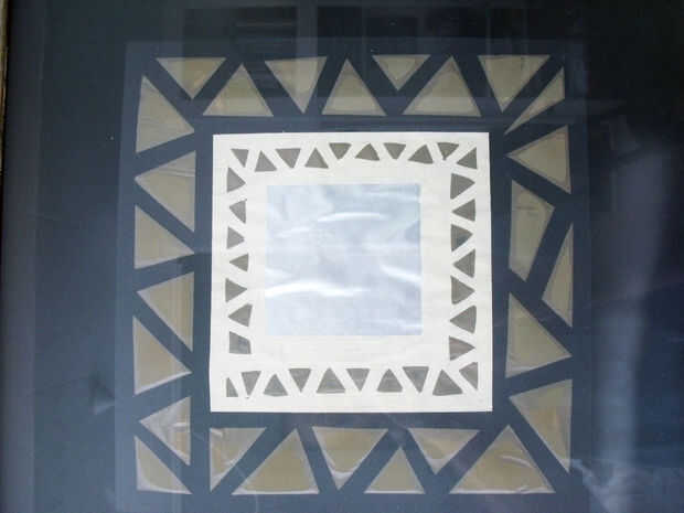 Cubra los agujeros de tanto papel con cinta adhesiva marrón. Tanto voltear y pegar el papel de josh para el cuadrado negro. El lado adhesivo de la cinta ahora es apuntado hacia arriba. Con estas piezas pegajosas el papel está atascado en el interior de las puertas de cristal.