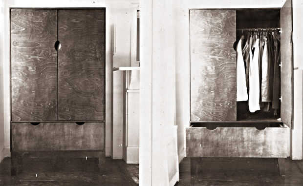 Se trata de un armario bastante "minimalista" y razonablemente funcional con un gabinete para perchas y un cajón para todas las cosas que se pliegan.