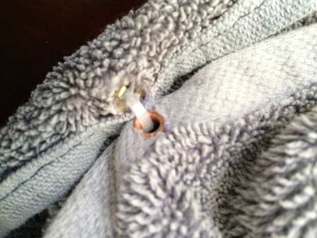 Consejo: Toallas no estiran mucho, así que permitir suficiente espacio para que su cabeza (y prendas de vestir) a través.