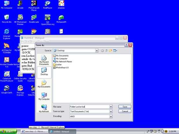 Ahora usted necesita para guardar el documento como archivo Locker.bat debe asegurarse de que usted tiene .bat al final. Esto guardará como un archivo por lotes. Guárdelo en la ubicación fueron que desea que la carpeta Locker que.