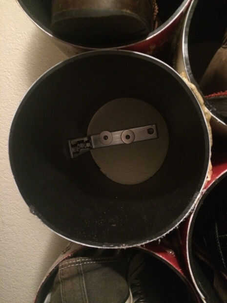 6: los orificios perforados en el tubo y usa los tornillos para fijar los soportes en L para el zapatero ahora juntos. Usé 6 en total, 2 en la parte superior, 2 en el centro y 2 en la parte inferior. Que funcionó muy bien y esto es ahora lo más robusto en mi casa.