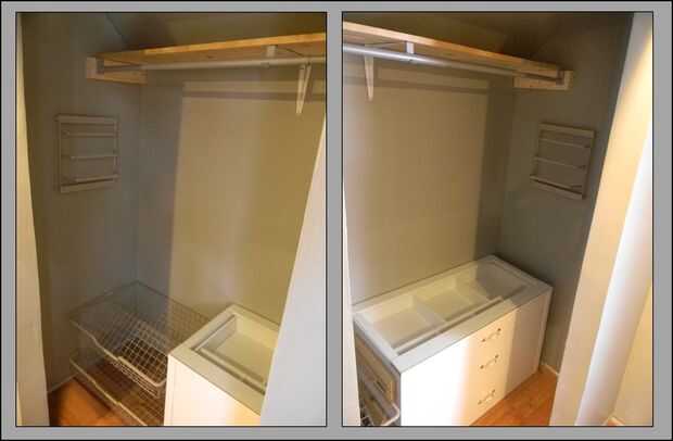 esta es una solución bastante rápida y sencilla para actualizar tu armario con una ropa super fuerte colgando de la barra.Decidimos hacer esto cuando el cable estante y colgador barra sistema existente se vino fuera de la pared derecha antes de que í